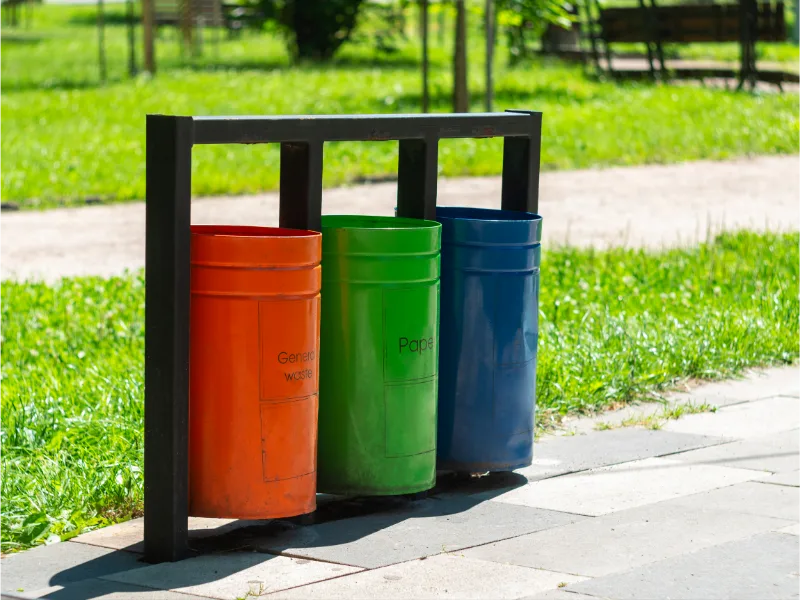 Hangi malzeme dış mekan çöp kovaları için uygundur? Metal, paslanmaz çelik ve UV dayanımlı plastikler dış ortam için idealdir.