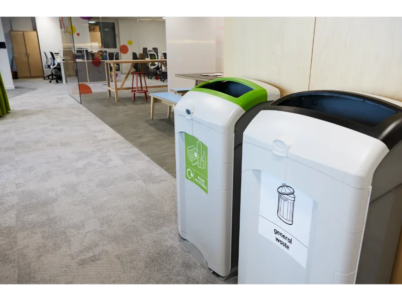 Geri dönüşüm için özel çöp kovaları mevcut mu? Evet, farklı renk ve etiketli bölmeli modeller bulunur.