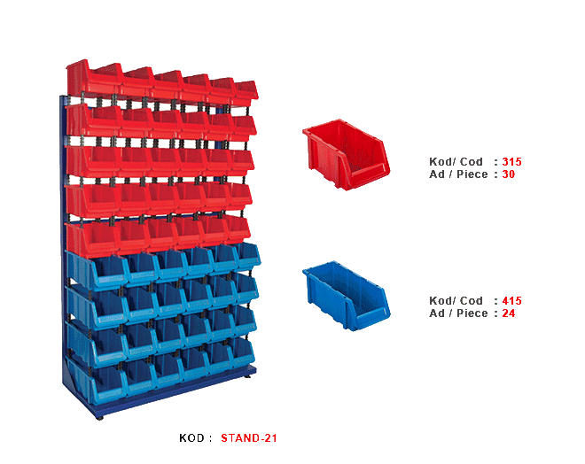 Stand 21 avadanlık standı. Metal AV 315 – 415 plastik avadanlık standı