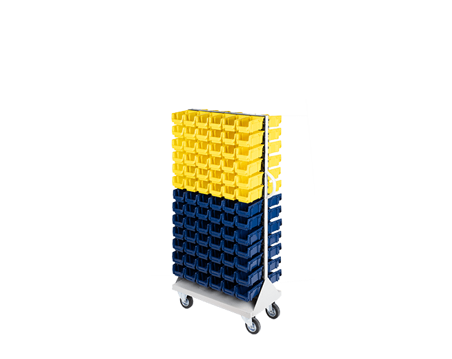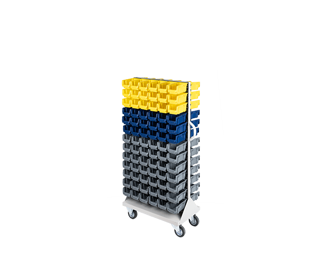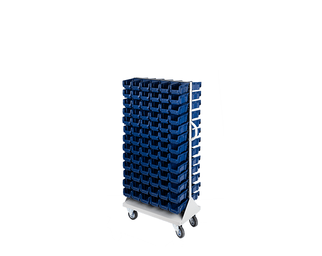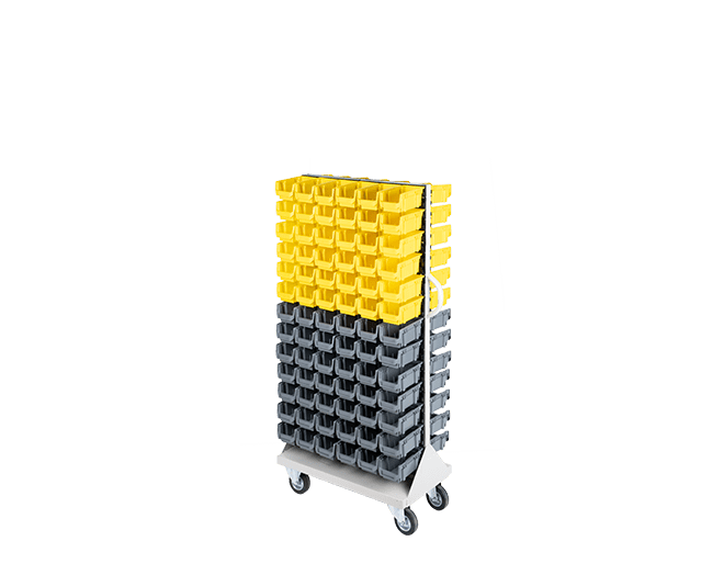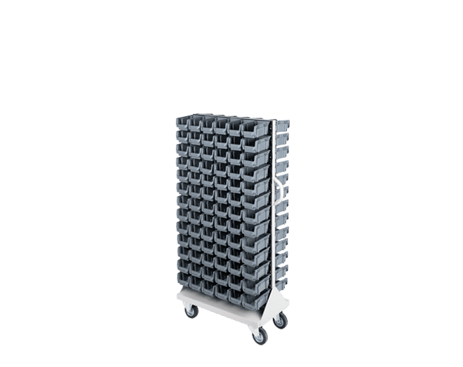 Bu mobil sistem iki yüzünde taşıdığı 156 adet kutuyla atölyede kusursuz bir düzen sağlar. Zira AX-100 kutular küçük vidaları, pulları ve elektronik devre elemanlarını başarıyla ayırır. Birinci sınıf plastik hammadde seçimi ağır yükler altında bile kutularda esneme yapmaz. Aslında en yoğun üretim günlerinde bile sisteminiz tıkır tıkır işler. Üstelik STX-2156 avadanlık standı operasyonel hızınızı hissedilir şekilde artırır. Kutuların modüler tırnak yapısı sayesinde parçalara erişiminiz sadece birkaç saniye sürer. Personel ihtiyacı olan parçayı panel üzerinden hemen seçer ve işine devam eder.