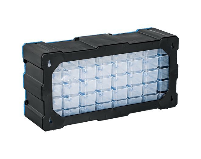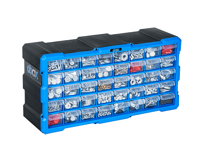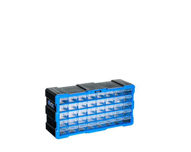 Renk: Gövde siyah, ön çerçeve mavi ve çekmeceler şeffaf
