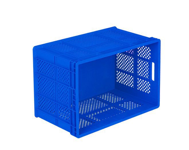 Yanları delikli, tabanı kapalı, sapları açık, plastik tekstil, tarım taşıma kasası