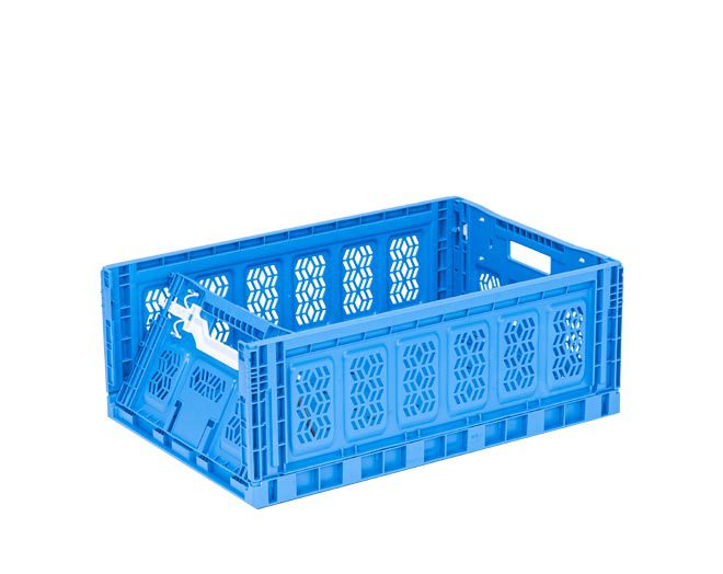 Plastik yanları ve altı delikli katlanır kasa Dış ebatları: 400 x 600 x 225 mm