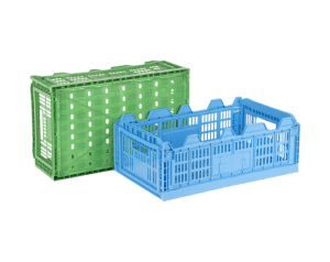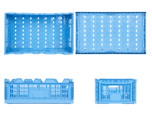Plastik yanları ve altı delikli, yükseltme teraslı katlanır kasa